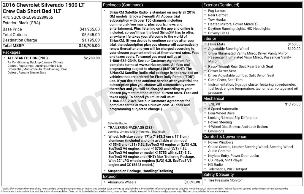 Safety inspected, 6-Speed Automatic Electronic with Overdrive, 4WD, Jet Black Cloth, 10-Way Power Driver's Seat Adjuster, 110-Volt AC Power Outlet, 150 Amp Alternator, 4-Wheel Disc Brakes, 4.2" Diagonal Color Display Driver Info Center, 40/20/40 Front Split Bench Seat, 6 Speaker Audio System, 6 Speakers, ABS brakes, Air Conditioning, All Star Edition, Alloy wheels, AM/FM radio: SiriusXM, Auxiliary External Transmission Oil Cooler, Bluetooth® For Phone, Body Color Bodyside Moldings, Body Color Door Handles, Body-Color Mirror Caps, Body-Color Power Adjustable Heated Outside Mirrors, Bodyside moldings, Brake assist, CD player, Cloth Seat Trim, Color-Keyed Carpeting w/Rubberized Vinyl Floor Mats, Compass, Deep-Tinted Glass, Delay-off headlights, Driver & Front Passenger Illuminated Vanity Mirrors, Driver door bin, Driver vanity mirror, Dual front impact airbags, Dual front side impact airbags, Dual-Zone Automatic Climate Control, Electric Rear-Window Defogger, Electronic Stability Control, Emergency communication system: OnStar Guidance, EZ Lift & Lower Tailgate, Front & Rear All-Weather Floor Mats, Front anti-roll bar, Front Center Armrest w/Storage, Front Chrome Bumper, Front License Plate Kit, Front reading lights, Front wheel independent suspension, Fully automatic headlights, HD Radio, Heated door mirrors, Heavy-Duty Rear Locking Differential, High-Intensity Discharge Headlights, Illuminated entry, Leather Wrapped Steering Wheel w/Cruise Controls, Low tire pressure warning, Manual Tilt Wheel Steering Column, Manual Tilt/Telescoping Steering Column, Molded Black Splash Guards (LPO), Occupant sensing airbag, OnStar 6 Months Guidance Plan, OnStar w/4G LTE, Outside temperature display, Overhead airbag, Overhead console, Panic alarm, Passenger door bin, Passenger vanity mirror, Power door mirrors, Power steering, Power windows, Power Windows w/Driver Express Up, Premium audio system: Chevrolet MyLink, Radio data system, Radio: AM/FM 8" Diagonal Color Touch Screen, Rear 60/40 Folding Bench Seat (Folds Up), Rear Chrome Bumper, Rear reading lights, Rear seat center armrest, Rear step bumper, Rear Vision Camera w/Dynamic Guide Lines, Rear Wheelhouse Liners, Remote Keyless Entry, Remote keyless entry, Remote Locking Tailgate, Remote Vehicle Starter System, Single Slot CD/MP3 Player, SiriusXM Satellite Radio, Speed control, Speed-sensing steering, Split folding rear seat, Steering Wheel Audio Controls, Steering wheel mounted audio controls, Tachometer, Theft Deterrent System (Unauthorized Entry), Thin Profile LED Fog Lamps, Tilt steering wheel, Traction control, Trailering Package, Trip computer, Variably intermittent wipers, Voltmeter, Wheels: 20" x 9" Polished-Aluminum, 6-Speed Automatic Electronic with Overdrive, 4WD, Jet Black Cloth.