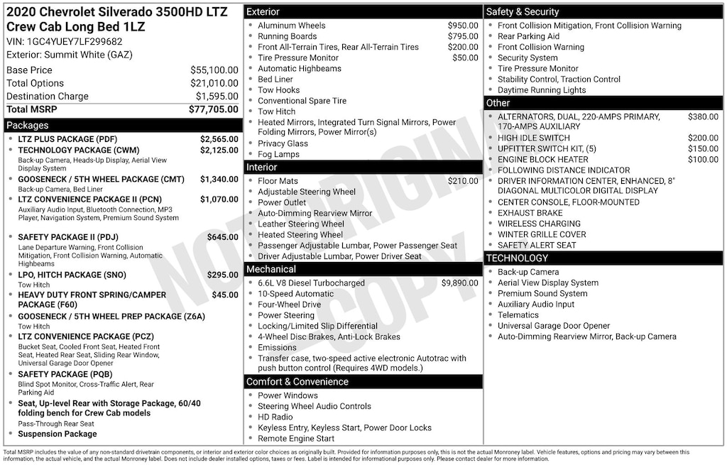 Summit White 2020 Chevrolet Silverado 3500HD LTZ Duramax 6.6L V8 Turbodiesel 4WD 4D Crew Cab 10-Speed Automatic