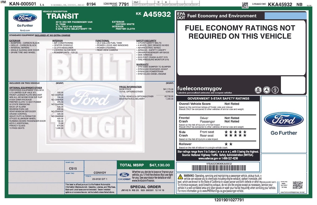 Beyond its impressive performance, this Transit-350 is packed with a host of features designed to enhance your driving experience and provide unparalleled convenience. The rear-window defroster, dual-zone climate control, and AM/FM radio with CD player ensure a comfortable and enjoyable ride for all. The reverse sensing system and backup alarm provide added peace of mind when maneuvering in tight spaces, while the cruise control with message center keeps you informed and in control.